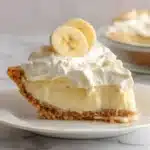 A classic Banana Cream Pie featuring a buttery crust, fresh banana slices, and a silky vanilla custard topped with fluffy whipped cream.