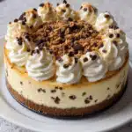 This recipe delivers a classic dessert with a refined texture and balanced sweetness. The contrast between the creamy filling, crunchy cookie crust, and scattered chocolate pieces creates an appealing combination in every bite. It is reliable, visually impressive, and suitable for celebrations or formal gatherings.