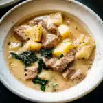 A hearty and comforting one-pot dish, this creamy beef and potato stew features tender beef chunks, soft potatoes, wilted kale, and a rich, savory broth. Perfect for colder days or when you’re craving something nourishing and filling.
