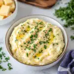Rich and velvety mashed potatoes made with cream, butter, and Parmesan cheese, finished with fresh herbs for an elegant and comforting side dish.