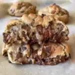 These extra-chewy chocolate chunk cookies are soft, gooey, and packed with chunks of rich chocolate. Perfect for those who love a dense, bakery-style cookie.