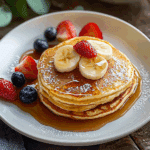 A plate of soft, golden, fluffy pancakes topped with fresh fruit and warm syrup is the perfect way to begin any morning. These homemade pancakes are light, tender, and exceptionally simple to prepare, making them an ideal breakfast for both relaxed weekends and busy mornings.