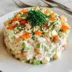 This Japanese Kani Salad is a creamy, refreshing seafood salad made with imitation crab, crisp vegetables, and a tangy mayonnaise dressing, often topped with roe and chives.