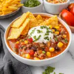 A hearty and flavorful taco soup loaded with seasoned ground beef, black beans, corn, and tomatoes. Perfect for a comforting weeknight dinner or game-day favorite.