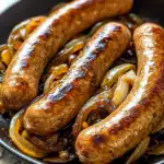 This recipe is appreciated for its simplicity, satisfying texture, and rich taste. The sausages develop a deep, savoury sear, while the onions soften and caramelise, creating a naturally sweet complement. It requires minimal ingredients and pairs effortlessly with a variety of sides. Whether you are preparing a quick family meal or seeking a reliable recipe for hosting, this dish offers dependable flavour and convenience.