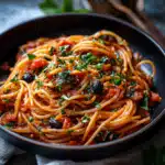 Spaghetti alla Puttanesca is a bold and savory Italian pasta dish made with garlic, olives, capers, anchovies, and tomatoes — a quick, flavorful meal perfect for weeknights.