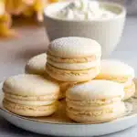 Vanilla macarons are delicate French sandwich cookies made with crisp, airy almond meringue shells and a luscious vanilla buttercream filling. These elegant treats boast a subtle sweetness, a soft interior, and a refined appearance perfect for special occasions or a luxurious dessert experience at home.